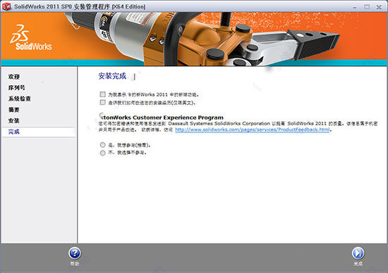 8、至此,SOLIDWORK 2011 64位破解版安装全部完成
