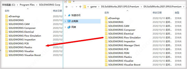 1、下载解压本站提供的压缩包,得到solidworks 2021 sp1.0 64位中文原程序和_SolidSQUAD_破解文件夹;