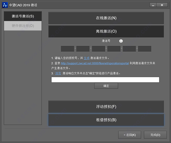8、授权方式包括在线激活,手动激活,浮动授权,以及租借授权,这里小编选择在线激活;