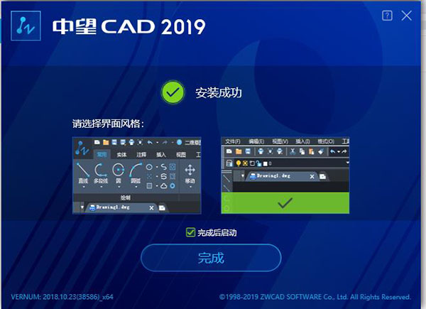 10、安装成功后,中望cad2019现在可以正常使用。