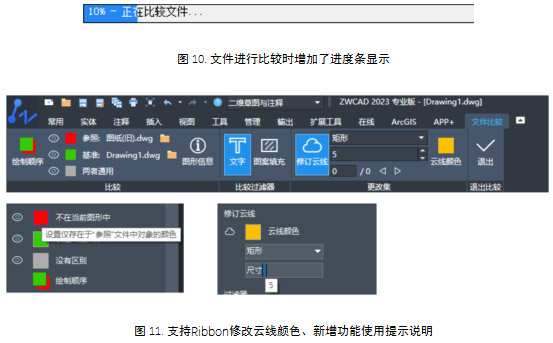 4、提升功能的易用性,文件进行比较时增加了进度条显示;支持Ribbon修改云线颜色;设置面板增加了功能使用提示说明。