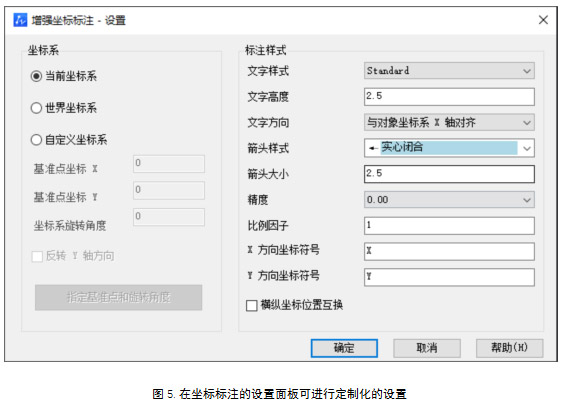 为了满足坐标标注在不同设计场景下使用的需求,我们还提供了丰富的样式供设计师选择,设计师可以修改坐标的箭头样式、文字样式、前缀样式等等。除此以外,还提供了在不同的坐标系下创建标注的功能。
