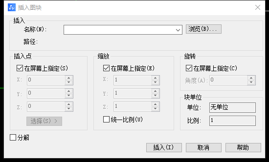 插入块与参照不同,插入后不用进行绑定,就是和图是一体。设计作图往往都有重复性的东西。比如对于建筑专业,家具门窗都是重复性的东西,不会画一个楼再建立个家具门窗的块。那么如果将家具做成一个块,积累素材。那么画图时,只要插入这个同类的东西即可。而不用一笔一画再画出来。浪费时间。插入一块一浏览一打开一确定。然后所选定的图就是以块的形式出现在图中。