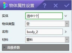 将高级参数设置默认收起,如果要调整物体的高级参数,如质量、摩擦系数等,点击 ,在下拉框内即可调整。示意图: