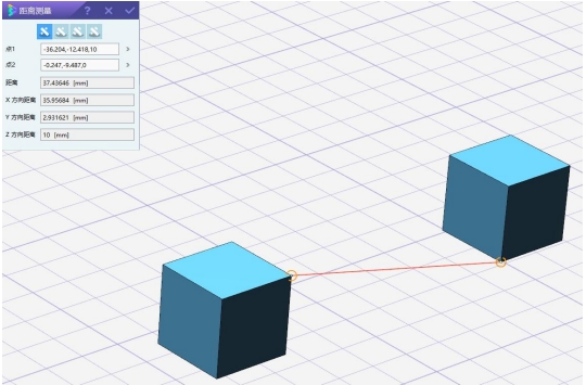 4、支持测量功能,选择点,几何体和平面来测量它们之间的距离。