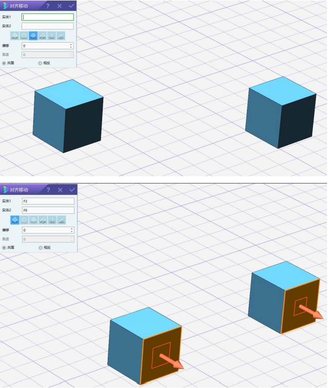 13、对齐功能,根据不同的对齐方式来对齐移动两个实体。