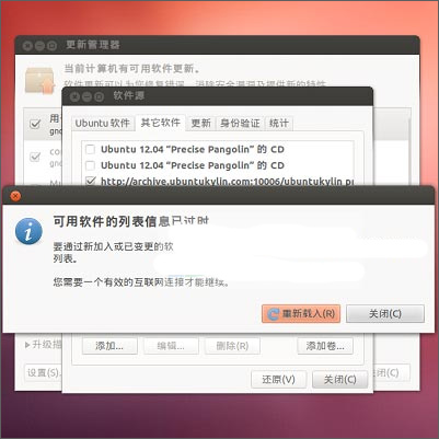 2、在更新管理器中,选择菜单:编辑->软件源,点击添加...按钮,在弹出的窗口中输入ppa:fcitx-team/nightly,点击添加源。