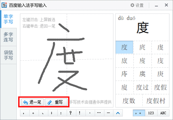 3、如果我们写错了笔画,可以在左下方选择退一笔或者直接全部重写