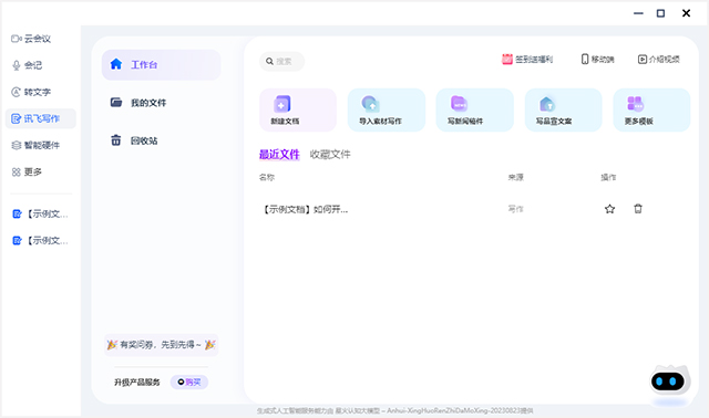 讯飞写作是一款基于讯飞星火大模型的AI写作工具,功能强大,能帮助用户高效完成各种类型的写作任务。它支持对话式写作、模板写作、润色改写等多种功能,让写作变得更简单流畅。比如,当你不知道如何开始时,直接和AI聊聊就能得到灵感;如果需要写工作报告或宣传文案,还能选择合适的模板快速上手。