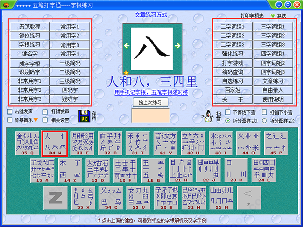 五笔打字提供字根编码提示、拆码提示