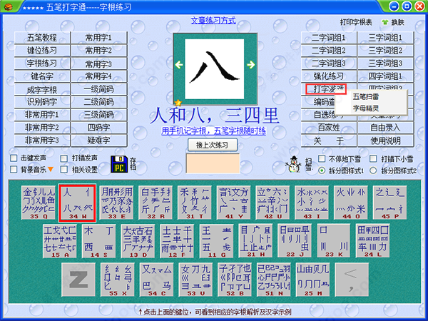 4、可以根据提示来练习五笔打字