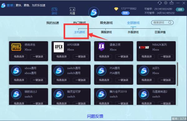 3、安装后打开软件,首次注册登录后,官方免费赠送2小时体验加速,可以找到你所需要的软件,点击一键加速再打开游戏即可体验顺畅的游戏体验。