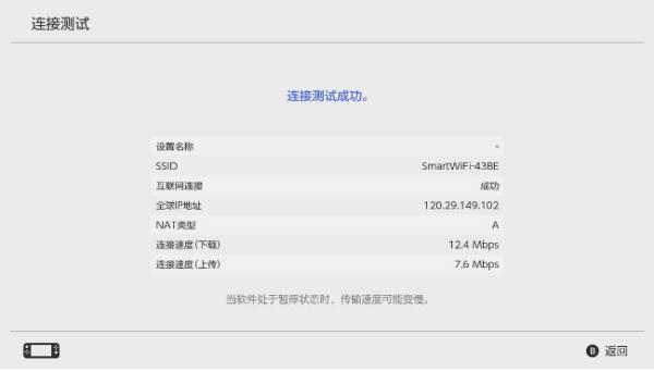 5、完成设置后,返回到网络测试,如下所示表示连接成功