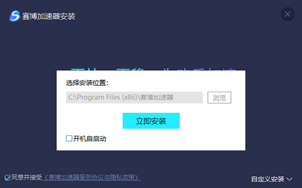 2、打开安装软件后,选择自定义安装,选择软件安装位置及是否要开机自启后点击安装即可;