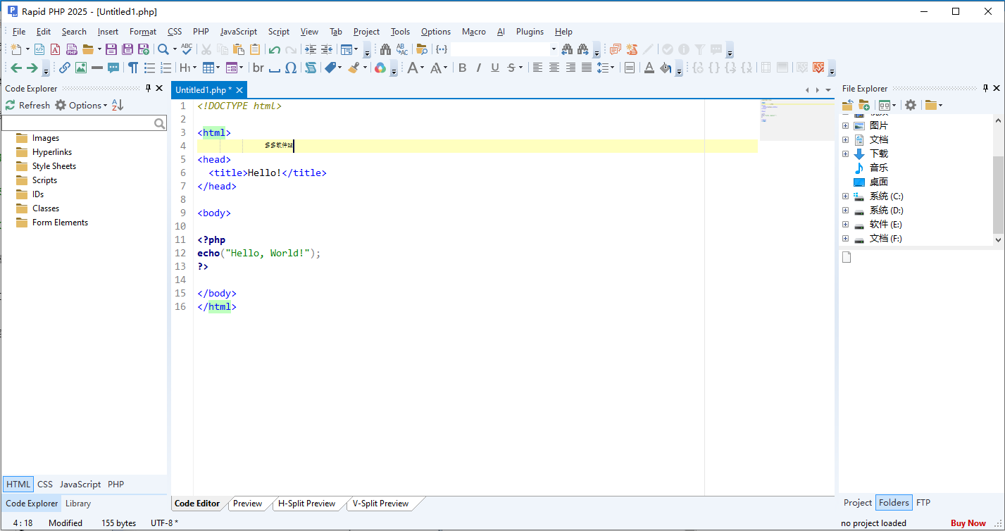 Rapid PHP官方版是一款非常著名的php代码编辑器软件,主要可辅助用户完成php程序的编译制作。相比传统的PHP编辑环境功能更多,使用也更方便。除了支持PHP外,软件还可以用来编辑HTML, XHTML, CSS 以及 JavaScript 代码。