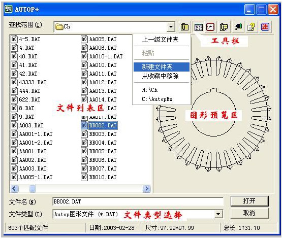 3、更正老AUTOP不能打开安装文件夹之外文件的缺陷,同目前市面上借用“虚拟盘”技术来打开任意文件夹的方式不同,AUTOP+采用了全新的技术,因而不会在打开的文件名前添加如“Z:”类的虚拟盘符。