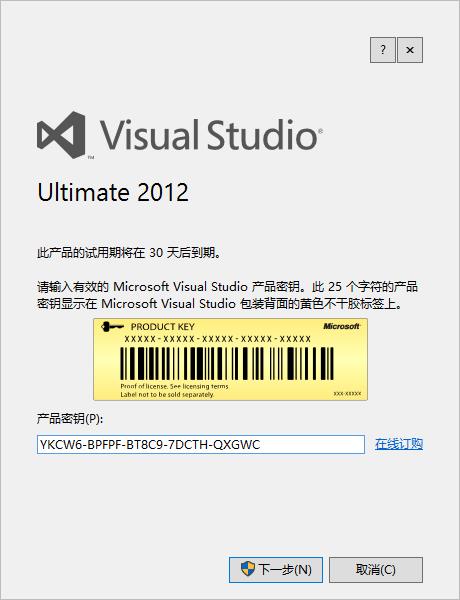 6、成功安装后,打开软件,弹出注册界面,输入vs2012密钥序列号(保证完美激活);