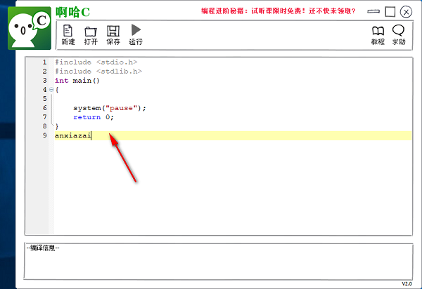 啊哈c语言是一款极为简单的c语言编程软件,该程序使用gcc内核编译,能够支持语法高亮,代码折叠,编译错误提示等功能,拥有新建,打开,保存,运行四个菜单,非常简单,便捷,而且是完全免费的,非常适合小学生学习c语言的入门时使用。如果您的孩子正在学习C语言的初级阶段,那么这款啊哈c客户端绿色版将非常适合您,无需安装,打开即用,变异方面也没有任何问题,有需求的用户请下载体验。