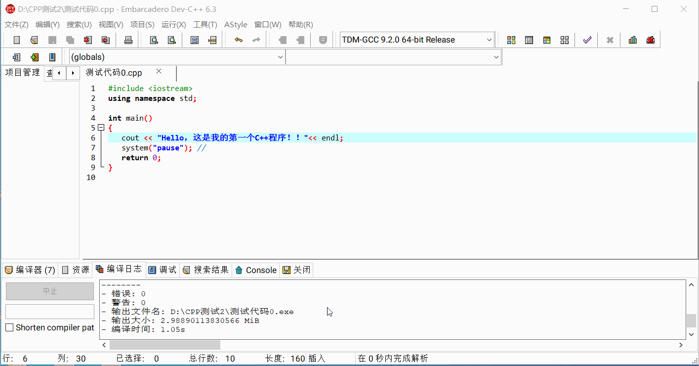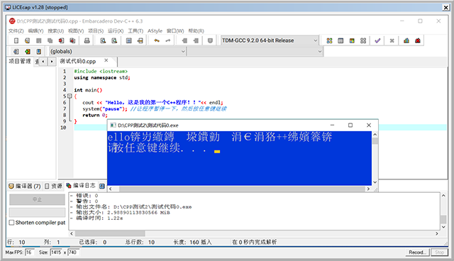 3、集成GNU编译器(MinGW),可以直接在IDE内编译、调试代码。