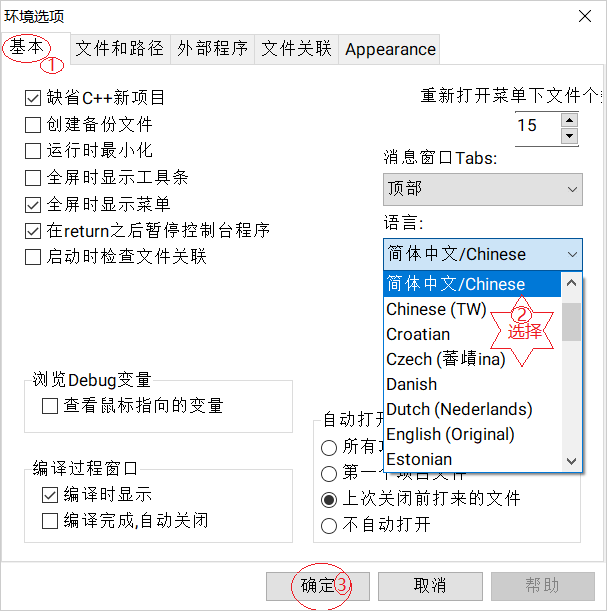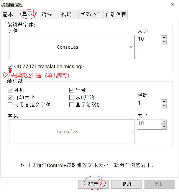 使用菜单命令“工具→编辑器选项”出现如下对话换框,按图示操作: