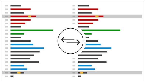 文件比较可以识别新增、修改和删除的行,但会忽略诸如块重新编号和间距等琐碎的格式变化。差异逐行显示,也可以全部一起显示或并排打印以供离线查看。