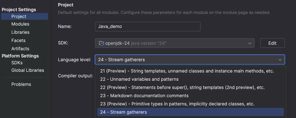 2025.1 版本全面支持最新 Java 24 版本中的所有功能,确保最新语言更新的无缝体验。 流收集器现已成为稳定功能,已集成到流调试工作流中。 所有其他功能,无论是实验性、预览版还是最终版,都同样受到支持,可以在项目中使用。