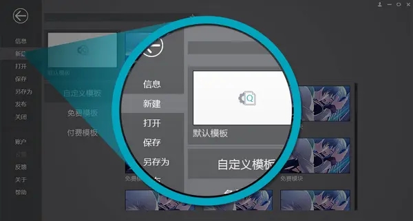 进入“文件”菜单,单击“新建”(也可单击快速启动栏的“新建”),单击任意游戏模板,一个新工程就已经成功创建了