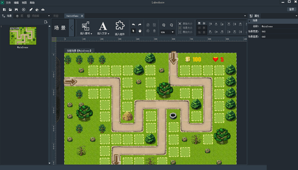 Tile Map是游戏中常用的一种地图形式,Tiled Map Editor是广为使用的免费Tile Map制作软件,LakeShore完美支持Tiled Map Editor生成的地图文件格式。Tiled Map Editor + LakeShore可以让您轻松的制作出丰富多彩的游戏。内置游戏中的塔防游戏的地图便是使用Tiled Map Editor制作的。