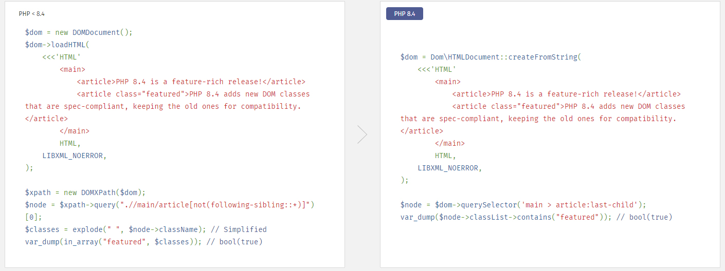 新的 DOM API 可以在 Dom 命名空间中使用。使用新的 DOM API 可以使用 Dom\HTMLDocument 和 Dom\XMLDocument 类创建文档。