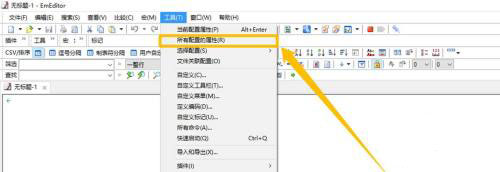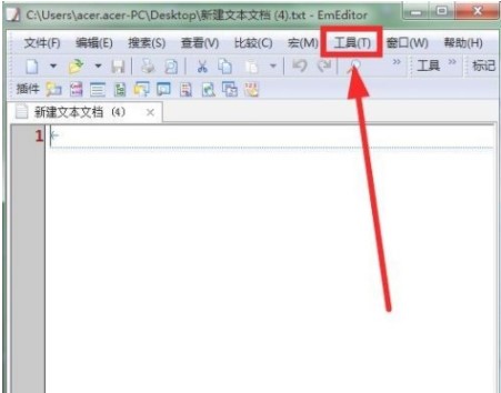 1、在“EmEditor”主界面中,点击上方的“工具(T)”菜单项。