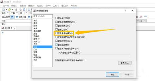5、“显示全角空格(W)”选项显示为“√”状态后,点击下方的“确定”按钮,这样就可以设置显示全角空格了。