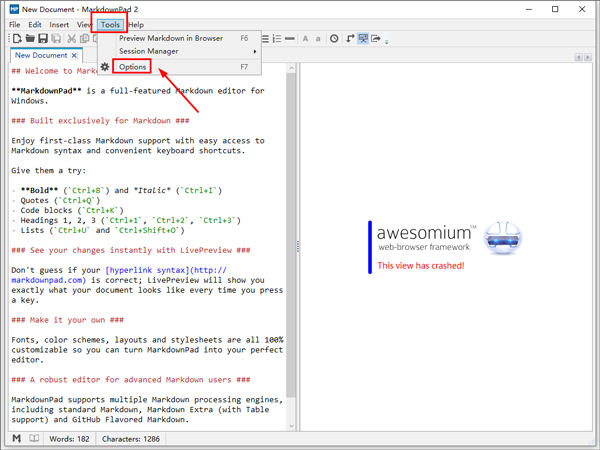 3、启动Markdown Pad2,报错’Awesomium.Windows.Controls.WebControl'?