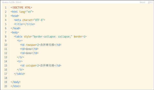 使用其他编辑器,准备好一个带 table 标签的 HTML 文件,我们这里可以命名文件名为 demo.table.html。