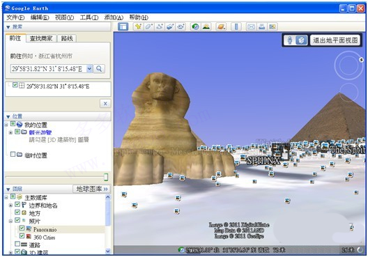 比如输入狮身人面像的坐标,它就自动帮你找到这个地方了。最后,给大家提供一些著名景点、建筑的坐标供大家娱乐。