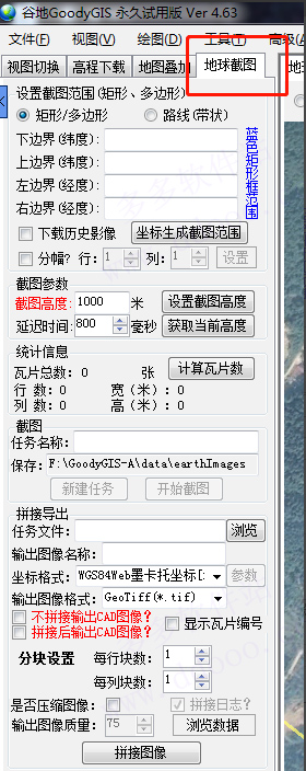 5、设置截图高度,数值约小,图片越清晰。然后点击“计算瓦片数量”。注意:试用版的谷歌地球,瓦片数量不能超过300,超过300要重新设置截图高度。