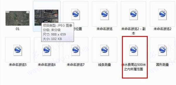 KMZ文件用ZIP工具软件打开,然后解压缩即可得到原始KML文件。当然,KMZ文件也有自己的好处,就是KMZ文件的自身可以包含图片,这样就可以不依赖引用网络上的图片。
