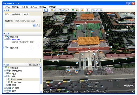 3、用谷歌地球选择的地方,有些著名的地方也会非常的清晰。到这个清晰度得时候,你还可以继续点这个地方,它就会切换成平面图,这样看起来就跟你到这个建筑物跟前一样,让你有种身在其中的感觉。