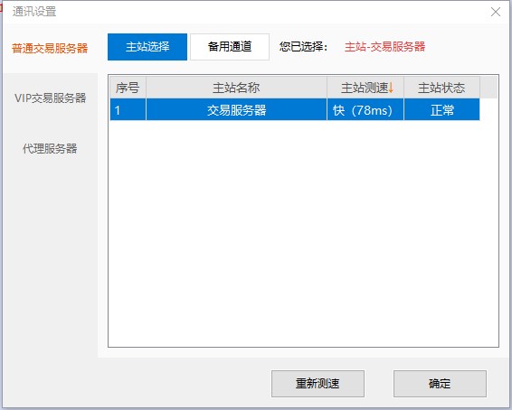 目前提供的交易服务器包括普通、VIP和代理服务器三种,除了主站,你还可以选择备用通道。
