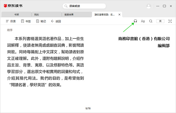 用户只需要在阅读界面中点击右上角的语音图标(下图绿色箭头所指)