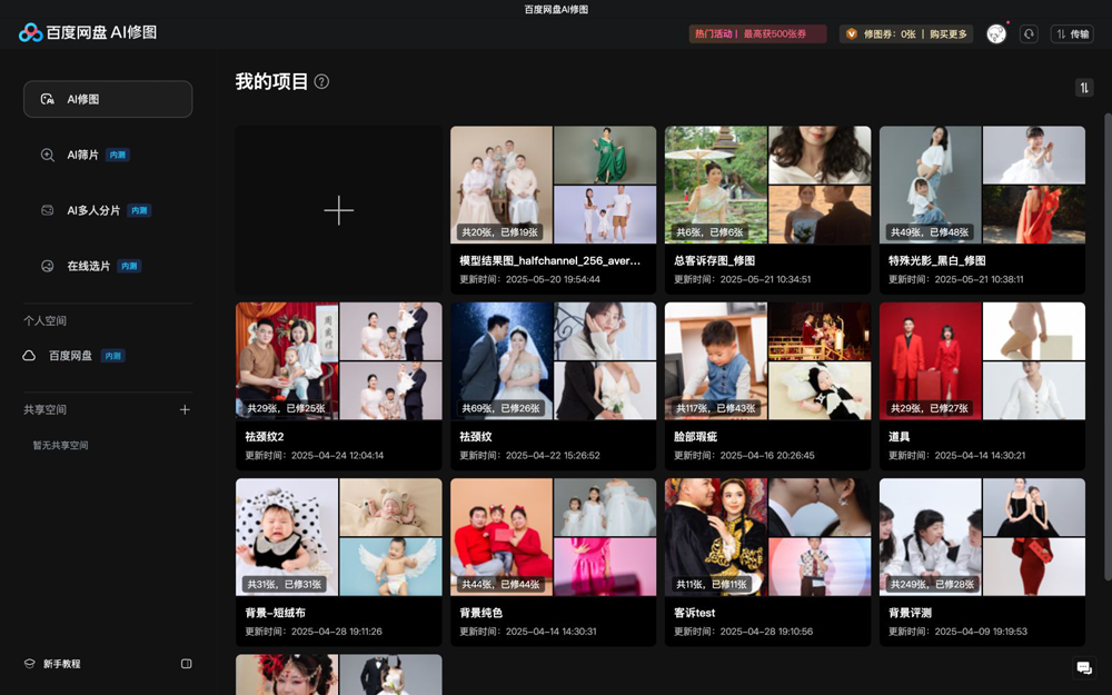 6、个人空间(百度网盘):更好的云端图片和管理体验,与常用工作流打通,图片处理更高效。