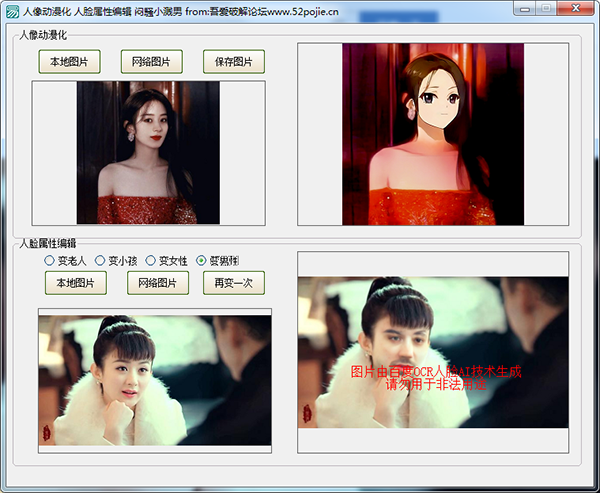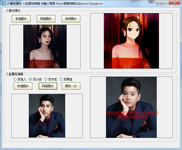 7、提供人脸编辑,提供四种转换效果,一键转换人脸为老人、小孩。