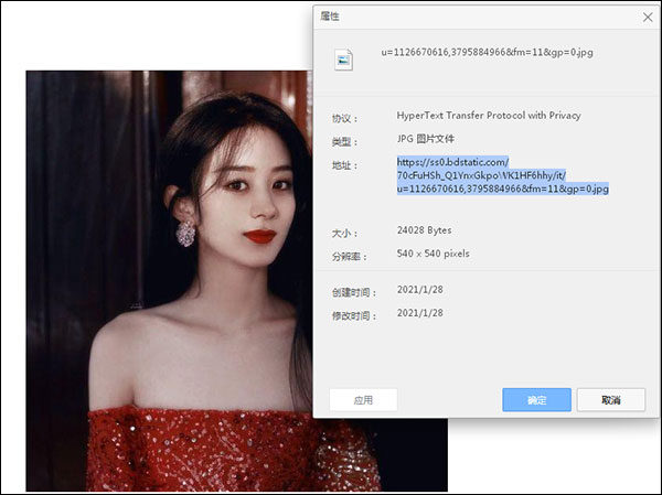 2、在百度中找到一张你需要变化的图片,右键复制属性内的链接;