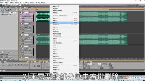 7、不需要的音频,单击右键,点击“删除”;