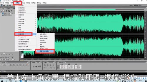 11、点击“效果-振幅和压限-振幅/淡化”;
