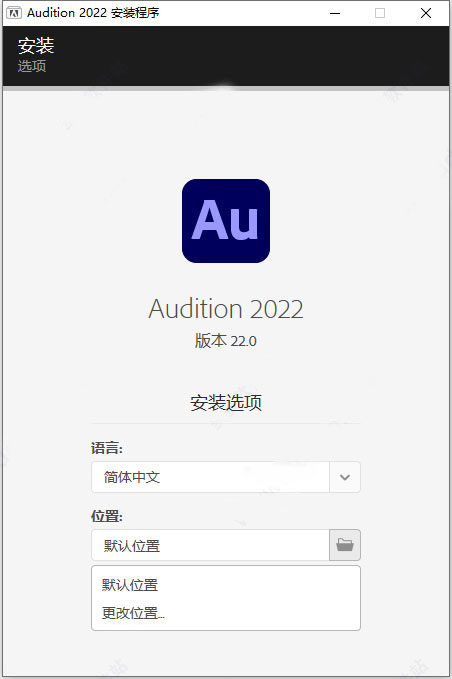 4、双击“Set-up.exe”,选择简体中文语言,自定义安装目录安装adobe audition 2022;