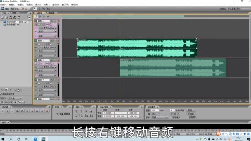 8、长按右键,移动音频;