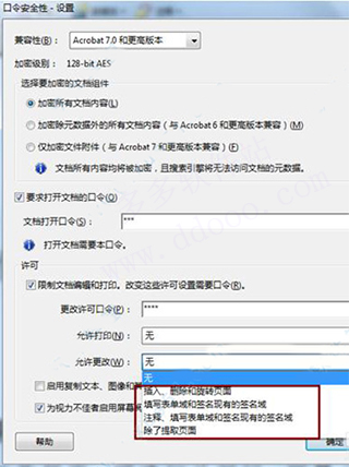 3、允许打印,建议选择无,也就是不允许打印,或者允许低分辨率打印。