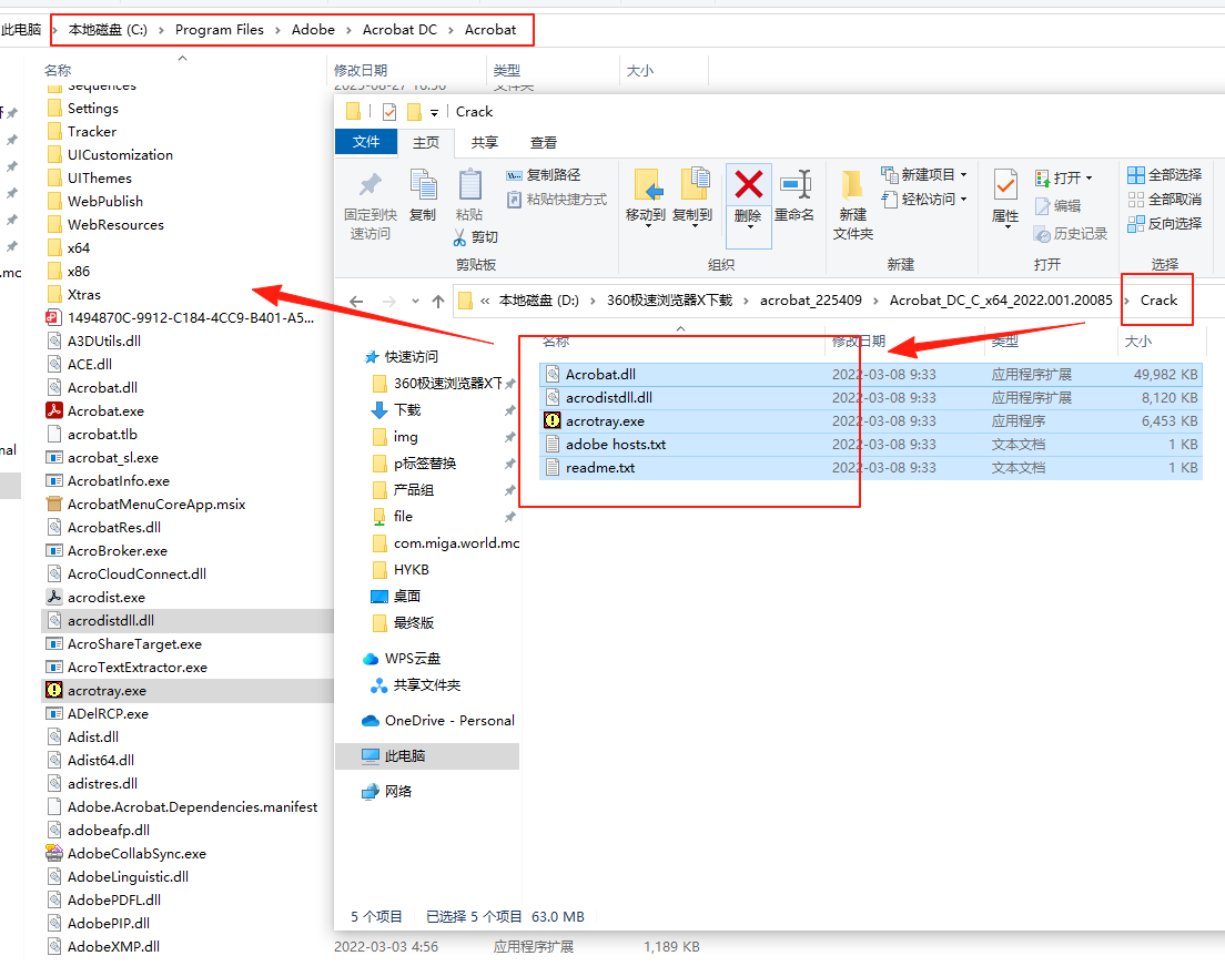 5、把Crack文件夹中的文件复制到软件安装目录下【默认安装目录:C:\Program Files\Adobe\Acrobat DC\Acrobat】;