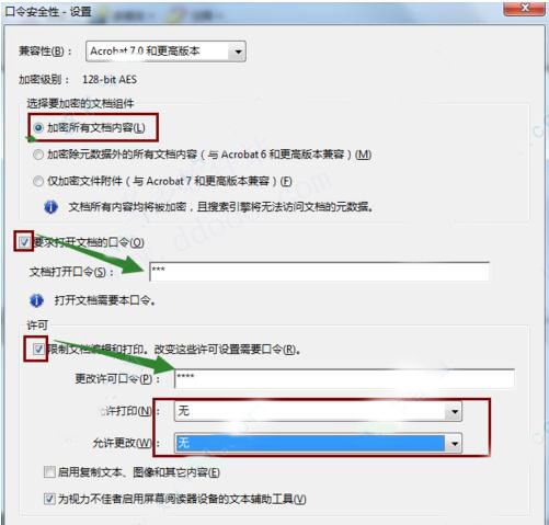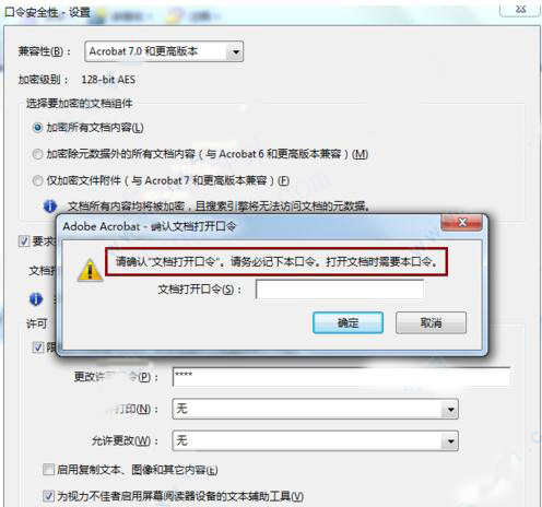 这里需要注意的是,两个口令不能一样,并且许可里的口令也是可以打开文档的。