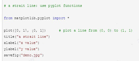 2、matplotlib有一套完全仿照MATLAB的函数形式的绘图接口,在matplotlib.pyplot模块中。这套函数接口方便MATLAB用户过度到matplotlib包。下面,我们调用该模块绘制一条直线。